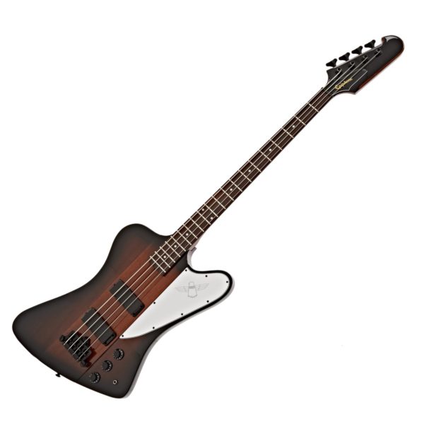 Il basso Epiphone Thunderbird IV, Vintage Sunburst è il preferito tra i musicisti rock e metal, grazie al suo caratteristico corpo reverse, dal tono aggressivo. Il set di humbucker TB Plus garantisce una ottima risposta sui bassi ed una gamma sonora incredibile. Realizzato con un solido corpo in mogano , manico in acero e tastiera in palissandro, lo strumento offre caratteristiche classiche, insieme a toni corposi e morbidi. capaci di adattarsi a diversi generi musicali. L’Epiphone Thunderbird IV risulta qualitativamente ed esteticamente simile all’originale Gibson Thunderbird, garantendo a tutti i musicisti uno strumento sicuro ed affidabile