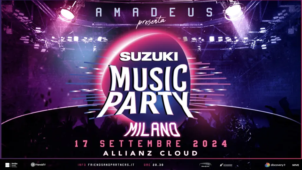 Martedì 17 settembre arriva all’Allianz Cloud di Milano il “SUZUKI MUSIC PARTY”, la serata evento condotta da AMADEUS, che andrà in onda domenica 22 settembre in prima serata sul NOVE.