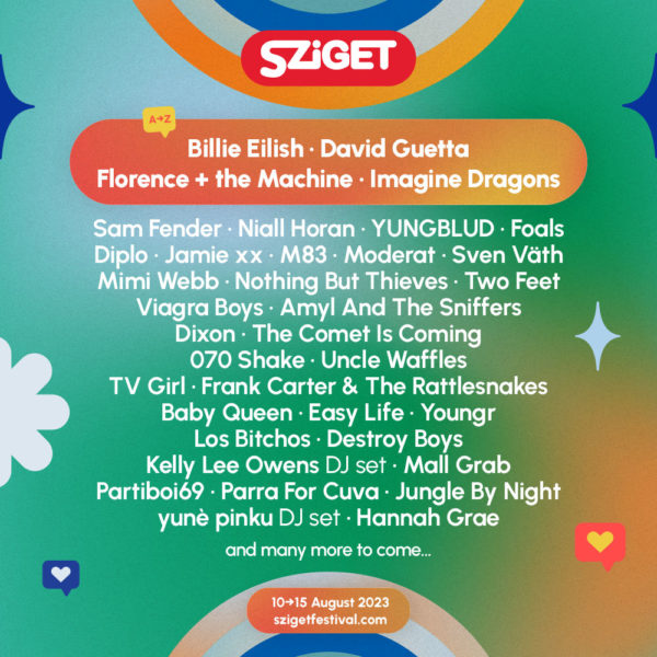 Il Sziget ritorna nel 2023 con un leggero cambio di date per facilitare l’aggiunta degli artisti in cartellone; le nuove date sono 10 – 15 Agosto 2023. I biglietti per 6 giorni sono ora in vendita a partire da 325 € (camping base incluso). Gli abbonamenti per 3 giorni e i ticket giornalieri saranno presto in vendita. Per maggiori informazioni sui biglietti, alloggi e glamping visita szigetfestival.com.