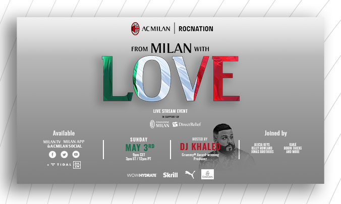 Sono immensamente orgoglioso del fatto che il Milan e Roc Nation abbiano creato questo evento per dire grazie a tutti quelli che a Milano, in Italia e nel mondo sono in prima linea nella lotta contro il Coronavirus”, ha dichiarato Ivan Gazidis, CEO del Milan. “Questa crisi ha causato difficoltà senza precedenti per tutti noi, ma il contributo che questi preziosi professionisti hanno dato è esemplare, stimolante e non sarà mai dimenticato. La partecipazione di una tale straordinaria gamma di talenti al nostro evento è un giusto tributo a tutti questi eroi moderni e spero che contribuirà a diffondere un messaggio di speranza e ottimismo in questo periodo così difficile”.
