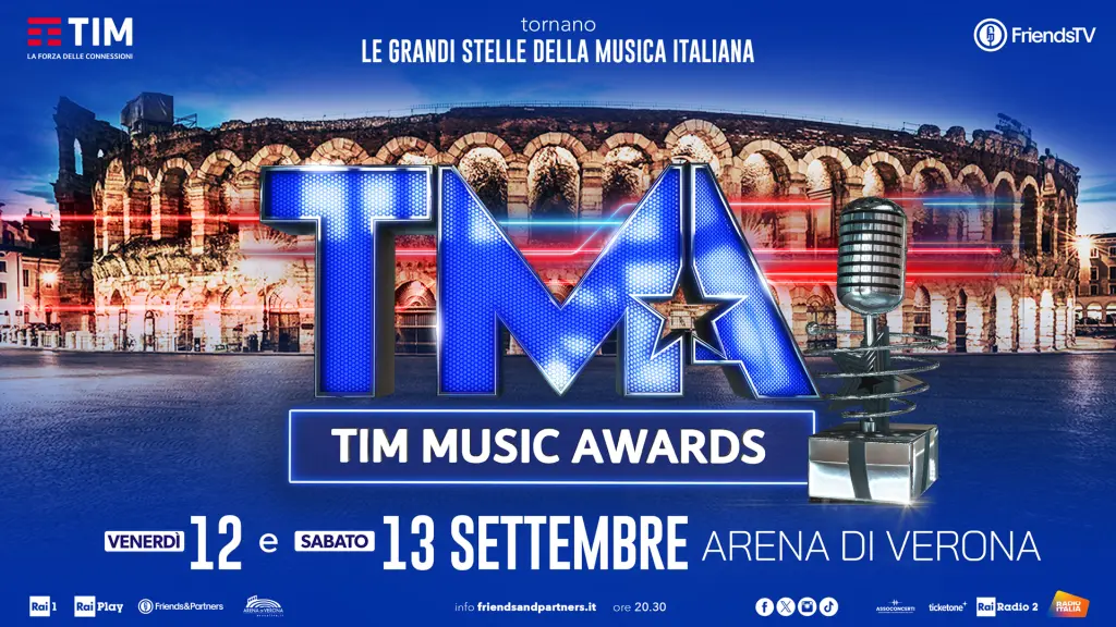 Tornano i TIM Music Awards 2025. In onda in diretta venerdì 12 e sabato 13 settembre in prima serata su Rai1, la prestigiosa kermesse, giunta alla diciannovesima edizione, sarà trasmessa dell’Arena di Verona.