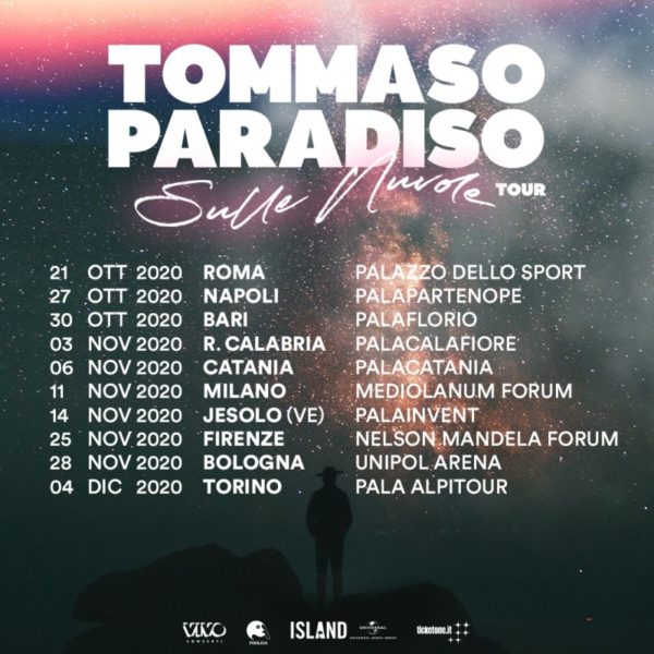 “SULLE NUVOLE TOUR” è il nome della tournée di Tommaso Paradiso. Dieci date live che lo vedranno protagonista, a partire dal 21 ottobre 2020, sui palchi dei principali palazzetti italiani.