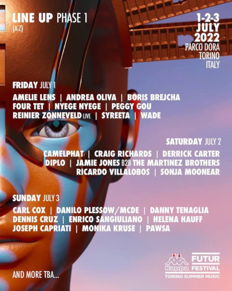 Torna il Kappa FuturFestival, tra le più importanti manifestazioni a livello europeo dedicate alla musica elettronica e alle arti digitali, giunta alla sua nona edizione, che si svolgerà al Parco Dora di Torino da venerdì 1 a domenica 3 luglio 2022.