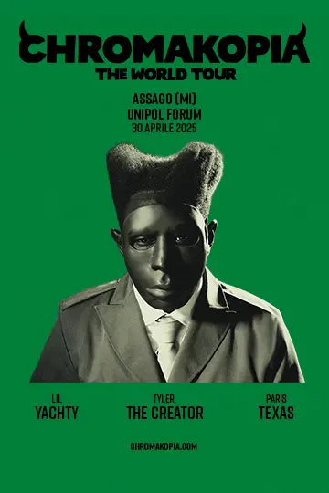 Questa sera, 30 aprile, l’Unipol Forum di Milano accoglie uno degli appuntamenti più attesi dell’anno: Tyler, The Creator arriva in Italia con CHROMAKOPIA: THE WORLD TOUR, l’unica data nel nostro Paese del suo nuovo, visionario spettacolo.
