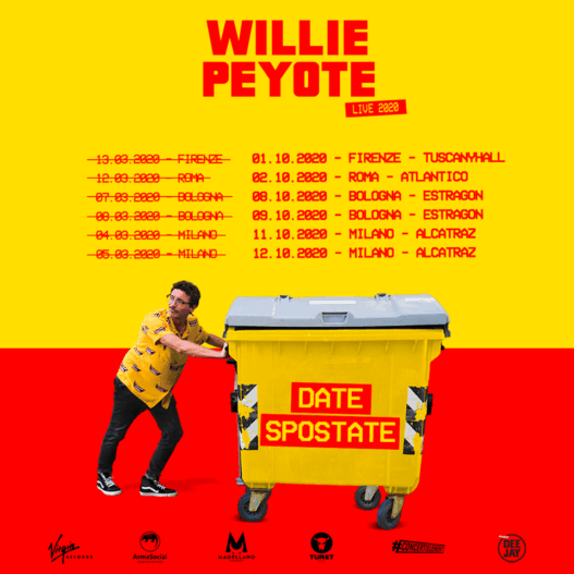 Rinviate le date di Milano, Bologna, Firenze e Roma del tour di Willie Peyote ad ottobre 2020.