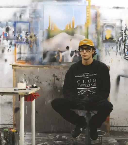 Nel mio studio ci sono molti colori spray, poche opere in archivio, tanta musica e poco spazio.