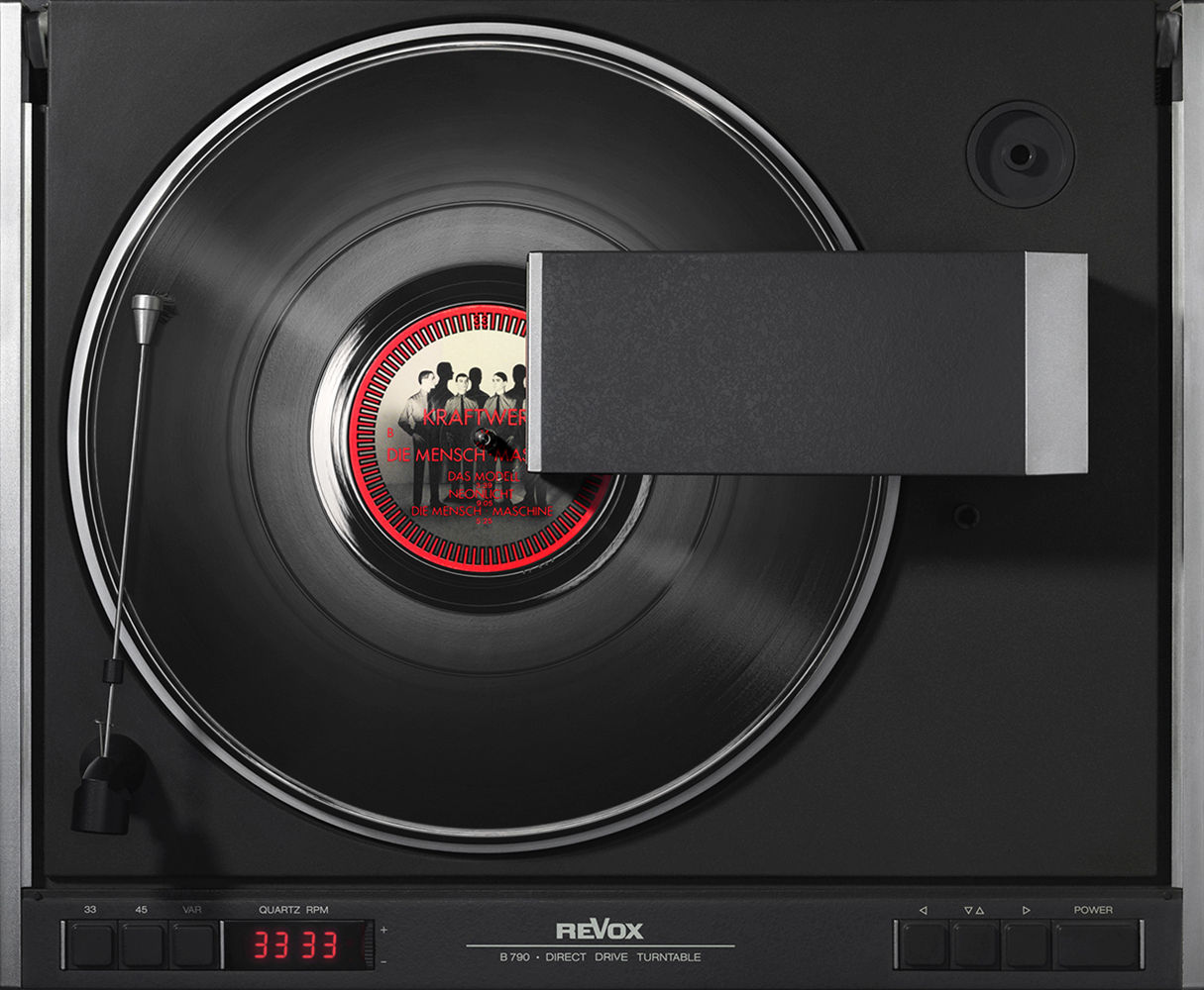 Ogni solco, ogni etichetta nota, ogni componente del braccio è sovradimensionato e quindi quasi tangibile. La speciale luce che Kai Schäfer ha sviluppato per i WORLDRECORDS contribuisce molto a rendere questi effetti reali.